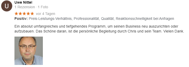 Heute bin ich Inhaber von zwei Unternehmen und durfte bereits über 100 Unternehmen auf Konzernebene über Mittelständler, bis hin zu Einzelunternehmern und Experten begleiten, authentische und verkaufsstarke Kommunikation aufzubauen, sowie ihre digitale Marketing-und Vetriebsmaschine anzuschmeißen und mit dem richtigen Mindset dauerhaft auf Erfolgskurs zu halten.