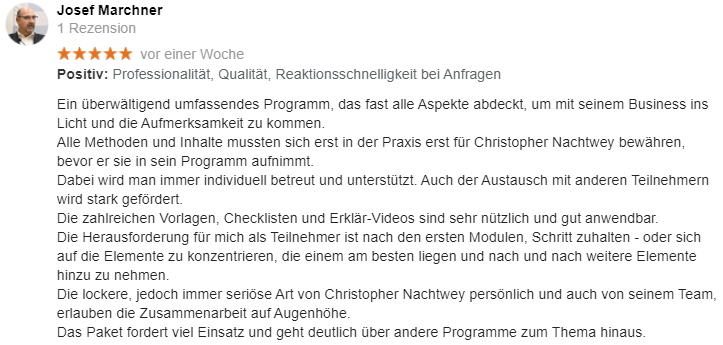 • Premium Coaching für Trainer, Berater und Dienstleister, die sich nicht mehr auf oberflächliche Werbemaßnahmen einlassen möchten